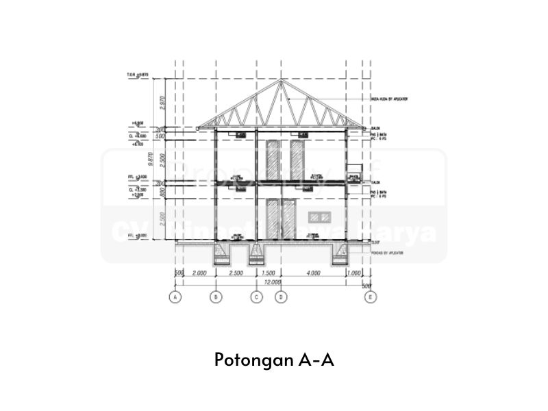 Bagian ini menunjukkan bagaimana penempatan kolom dan balok yang berfungsi sebagai penopang utama bangunan, memastikan setiap elemen terpasang dengan kekuatan optimal.