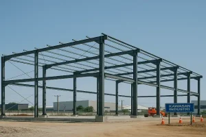 Layanan kontraktor baja yang meliputi pemasangan struktur rangka kantor, konstruksi atap baja, serta sistem bentang besar sesuai standar teknik dan keamanan.