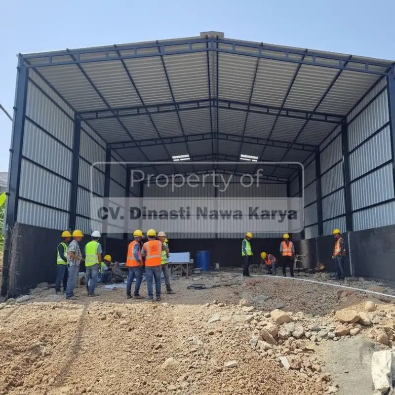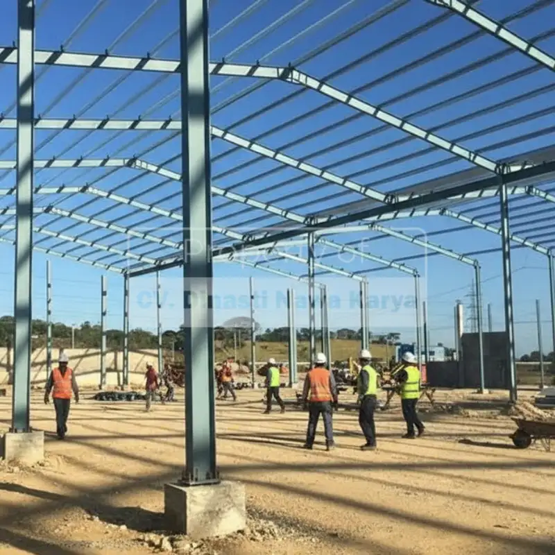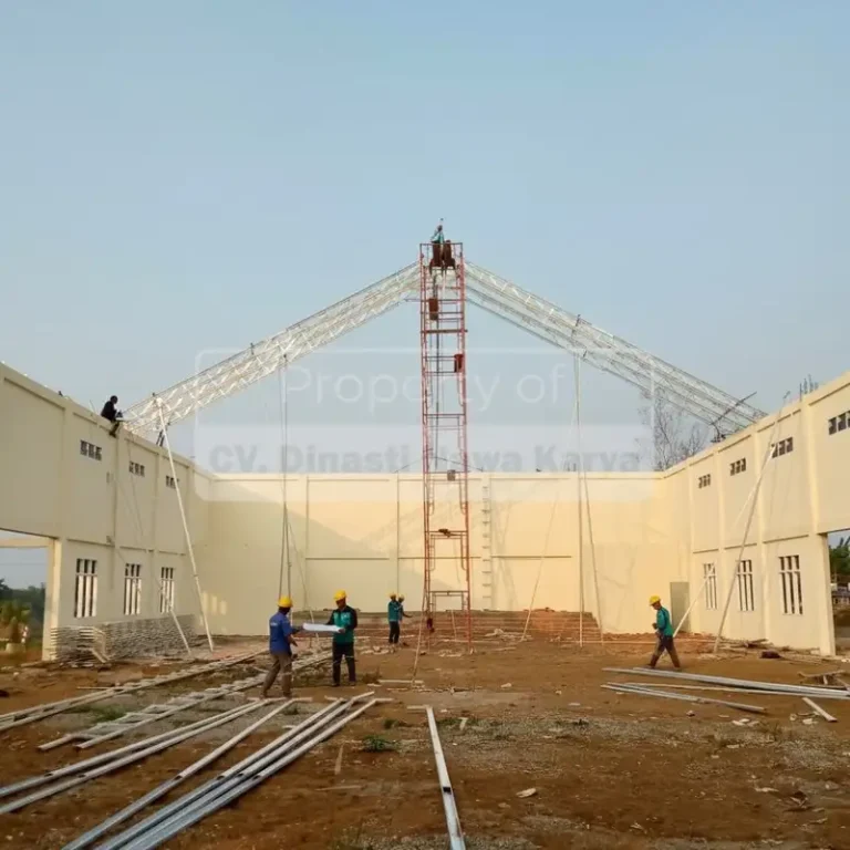Pembangunan menggunakan material baja sebagai struktur utama, memberikan kekuatan tinggi, dan proses pengerjaan yang lebih efisien untuk berbagai jenis bangunan.